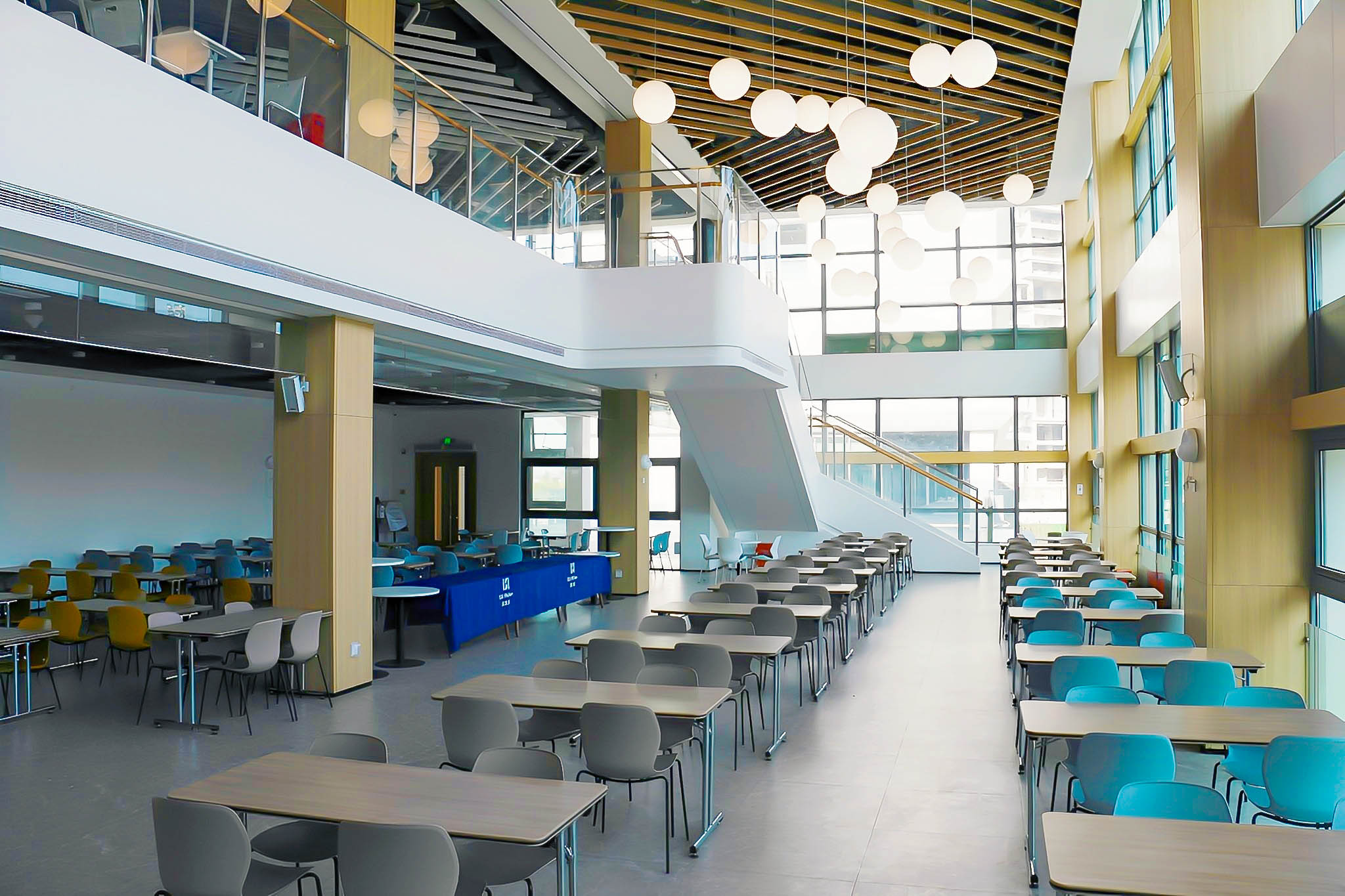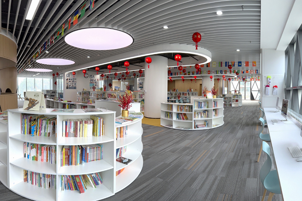 ISA Wuhan School Library has a partially hollow design on the second floor, in which more than 50,000 books can be efficiently circulated, providing students with advanced technology support to maximize digital learning.